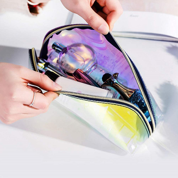 کیف های آرایشی هولوگرافیک کیف برس های آرایشی رنگین کمانی شفاف